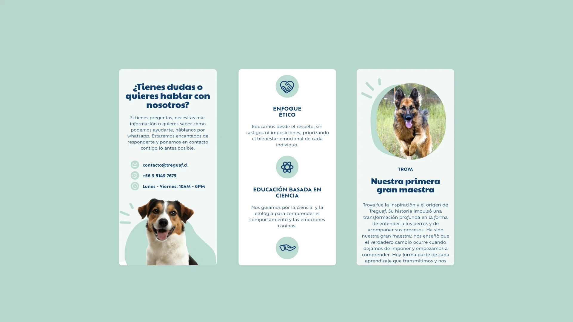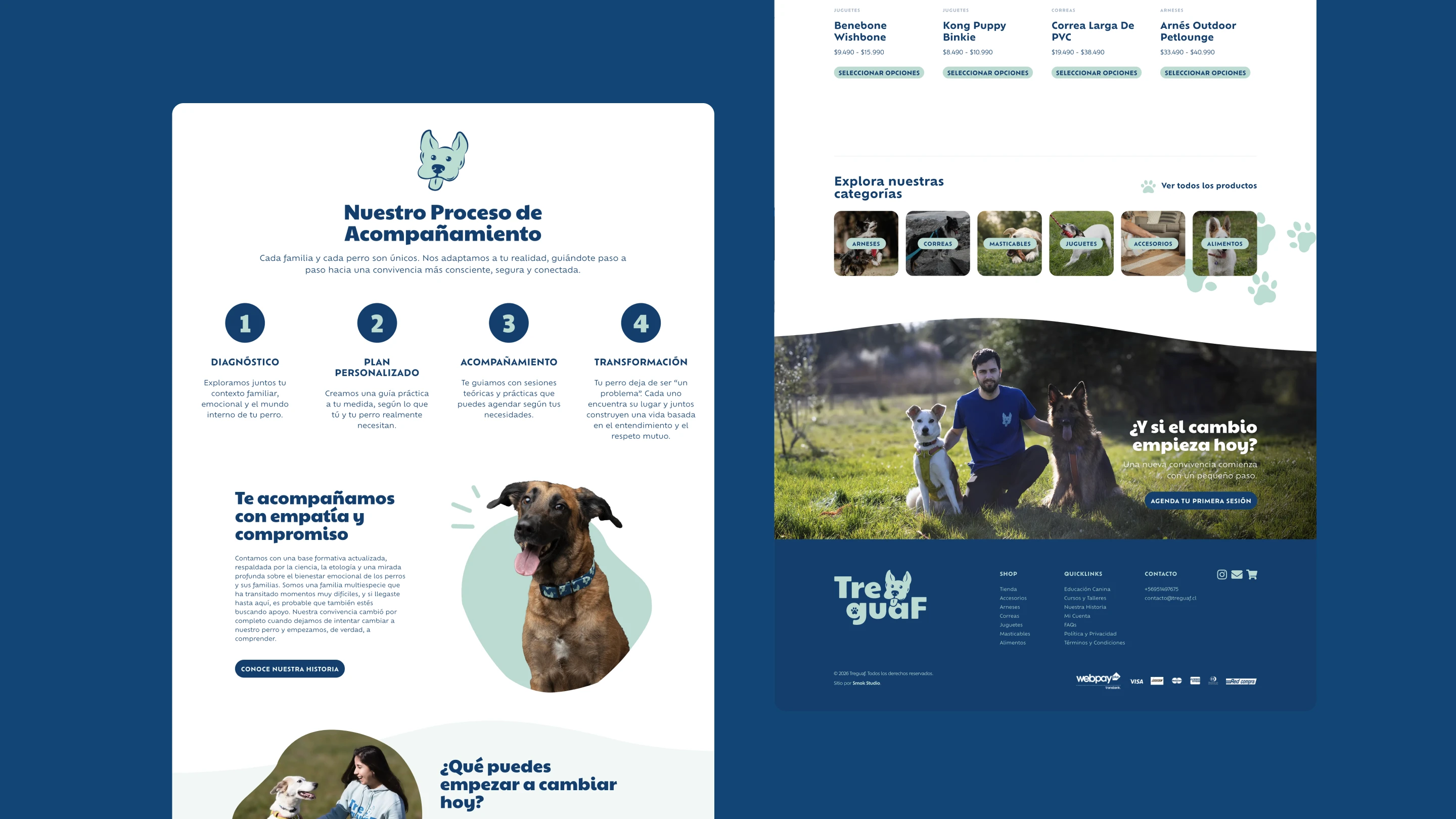 Treguaf is a digital platform for dog training and education services. The UI was designed in Figma and developed in WordPress, creating a clear and approachable interface for clients to explore programs and book sessions online.